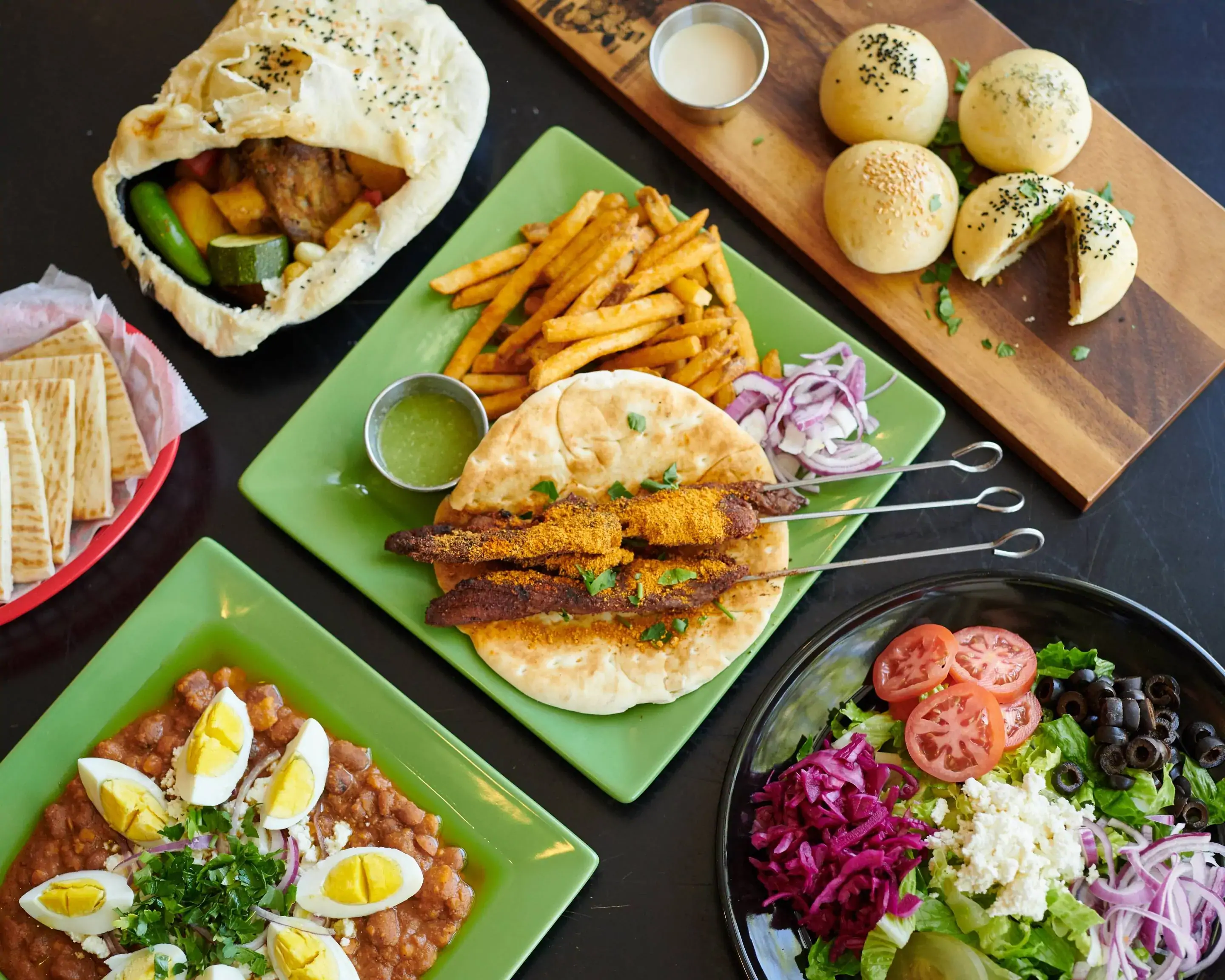Outpost of a small, casual Mediterranean chain with WiFi, TVs & a hookah lounge with…